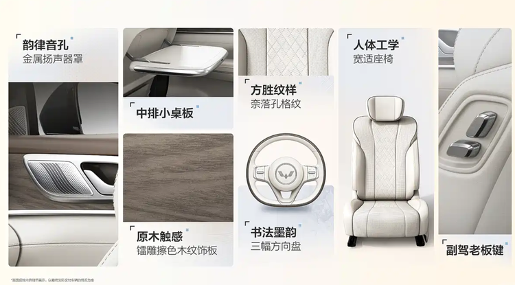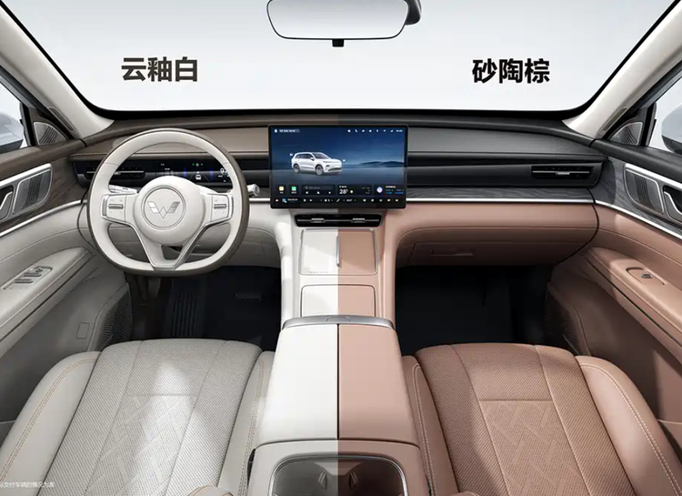 内饰方面,新车提供砂陶棕、云釉白两款内饰配色,双色方向盘展现书法墨韵,配备8.8液晶仪表与15.6英寸中控屏,提供手机无线充电面板、256色氛围灯、后排小桌板等,三排座椅空间可容纳正常身高的成年人。