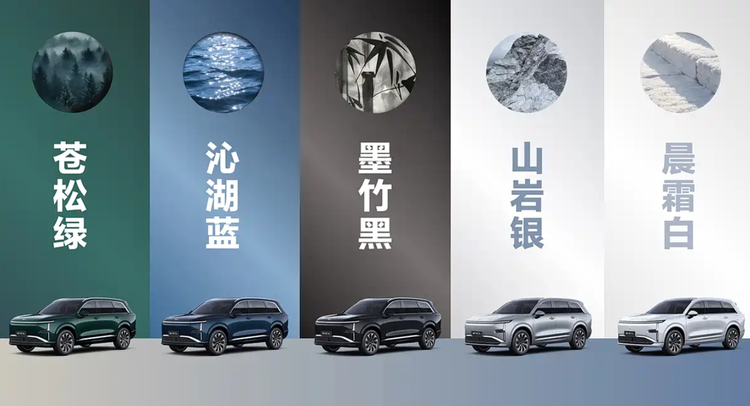 外观方面,新车外观采用家族全新“凌空美学”设计语言,前脸搭配星环式贯穿灯组,两侧垂直的日行灯采用分段式设计,下包围配备主动式通风口,提供苍松绿、沁湖蓝、墨竹黑、山岩银、晨霜白5种车色可选。