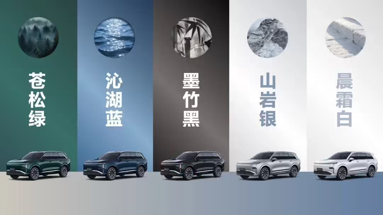 该车漆采用巴斯夫2K高透清漆,经8层工艺加持,提供五款中式车色——苍松绿、沁湖蓝、墨竹黑、山岩银、晨霜白。