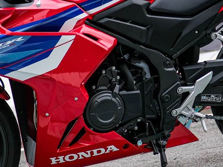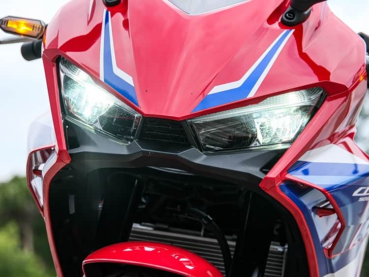 2026 款本田 CBR500R 采用 CBR 家族 “速度之形” 核心设计语言,车头V型风道配合两侧锐利外扩的整流罩,远看确实有几分火刃的神韵。定风翼也不是纯装饰,高速时能提供一定下压力,车身侧面的高腰线,饱满的油箱,视觉上也把战斗感拉满了。配色给的是熔岩红和耀晶灰两种,满足激情和低调的视觉审美。