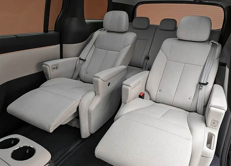 乘用性表现方面,得益于5300/1980/1850mm的车身三围以及3200mm的轴距,可让其车内具备颇为充裕的内部空间表现。而其第二排独立的双零重力座椅,还具备16点按摩与电动腿托等功能,搭配后排吸顶娱乐屏、小桌板、车载冰箱、石墨烯座椅加热以及22扬声器殿堂级音响系统等功能,可带来相对高端化的乘用舒适性体验。