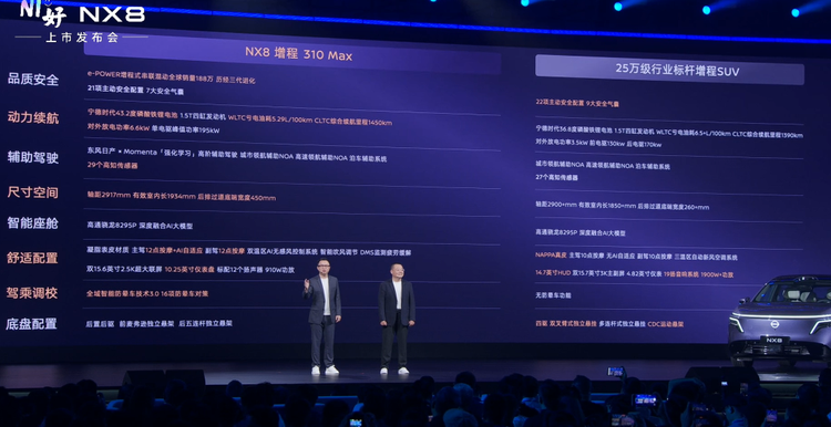 对比之下,东风日产NX8增程版搭载1.5T四缸增程器+宁德时代43.2kWh大电池,CLTC纯电续航310km,综合续航超1450km,亏电油耗低至4.51L/100km。在续航方面,超越了同价位的国产新能源增程。
