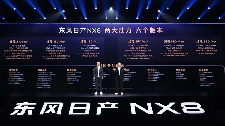4月8日,东风日产开了一场“无套路” 最直白的发布会,平时要花1个半小时的发布会,只用半小时说重点,讲干货,开场直接公布价格。东风日产NX8上市权益价14.99-19.99万元,增程和纯电2个版本6款车型,同时带三电终身质保、无套路自燃包赔等超值权益,上市即交付。