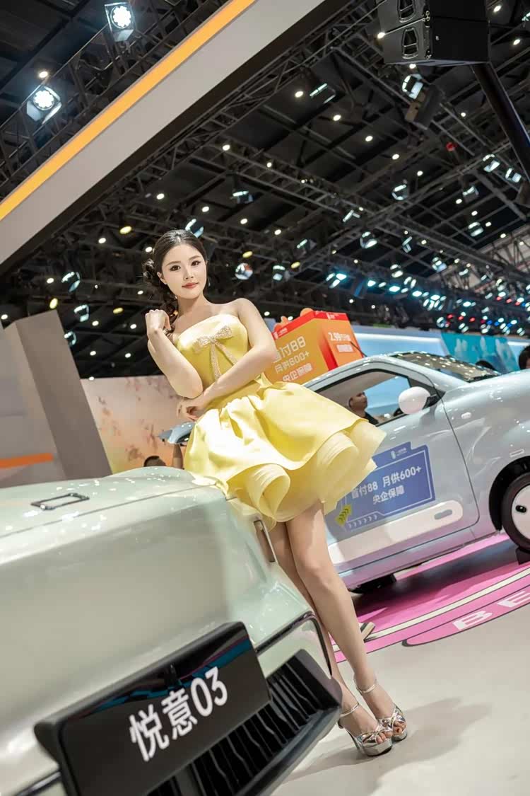 在比亚迪展台,王牌模特梁怡Selena(180cm)自带强大御姐气场,以“又美又飒”的风格完美契合了比亚迪车型的大气与科技感,举手投足间尽显自信从容。