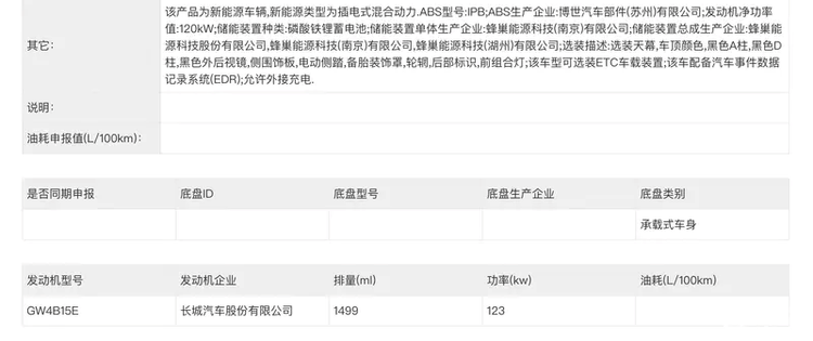 动力方面,根据申报信息显示,新车将提供1.5T和2.0T两种插混系统供用户选择,其中1.5T发动机最大功率123kW、2.0T发动机最大功率175kW。