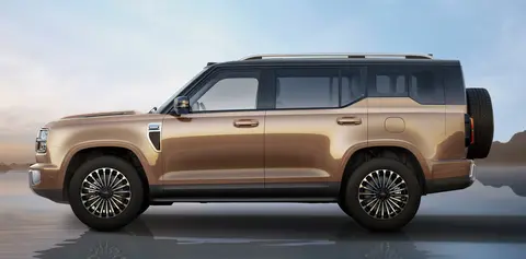 车身方面,典型的方盒子SUV轮廓,硬朗的贯穿式车身筋线,的确为整车增加了不少力量感,同时也能够有效的提升整车的横向视觉体验,在熏黑车顶的加持下,更显修长;多条幅造型轮毂显然是要彰显其“旗舰”的身份属性,虽说与这种方盒子车身算不上十足的搭调,但配合上这样“勇猛”的大车身,的确很显气场。值得一提的是,新车在后小车窗沿处采用了梯形的凸起造型设计,让这个硬朗的大家伙多少了些“平庸”。
