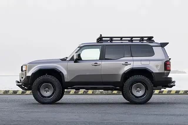 这个案例主要是外观套件为主,动力方面并未进行升级。在中国市场,一汽丰田为2026款普拉多LC250全系标配了2.4T油电混动系统(i-FORCE MAX)。该系统由一台T24A-FTS 2.4升直列四缸涡轮增压发动机和一台48匹电机组成,搭配8速手自一体变速箱,系统综合最大功率为243千瓦(约330马力),峰值扭矩高达630牛·米。而日本本土市场则提供2.7升自然吸气汽油发动机(2TR-FE)可输出163匹马力,峰值扭矩246牛·米,匹配6速自动变速箱;还有更具越野潜力的2.8升直列四缸柴油涡轮增压发动机(1GD-FTV)可输出204匹马力,峰值扭矩500牛·米,匹配8速自动变速箱。