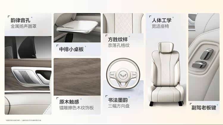 用料方面比较讲究,比如内饰采用了大量的软包覆,一些木纹饰板用镭雕擦色工艺打造出原木触感、扬声器罩有着金属质感等等,这都进一步拉高新车内饰档次感。