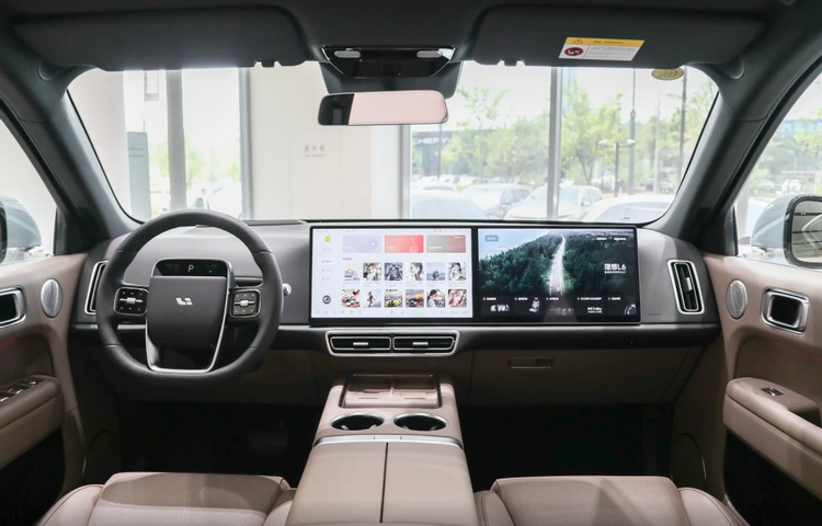 内饰部分,理想L6依然没有什么新意,两块15.7英寸的LCD屏并排铺开,黑边控制得不错,方向盘上那块4.82英寸的小屏负责核心驾驶信息,搭配HUD抬显,这套交互逻辑用了这么多年,它的优势就是学习成本低。