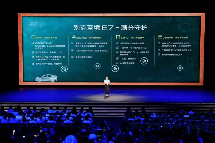 孩子日常在车内需要接触的材质,自然也是健康防护的关键,这方面别克至境E7全车座椅直接采用了通过OEKO-TEX母婴级健康认证的材质,这一认证是全球权威的纺织品生态最高标准,能有效规避甲醛、重金属、致敏染料等有害物质,即便幼儿零距离接触、啃咬也无需担心。