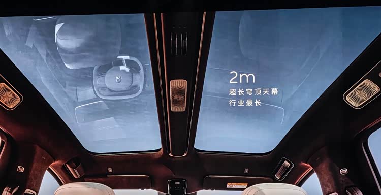 蔚来 ES9 还全球首发阵列式 LC 隐私调光车窗、行业首创 20 点机械式足底按摩,同级首发座椅位置随动智能风向调节、座椅桌案随动智能追光阅读灯等,同时拥有行业最长的穹顶天幕。