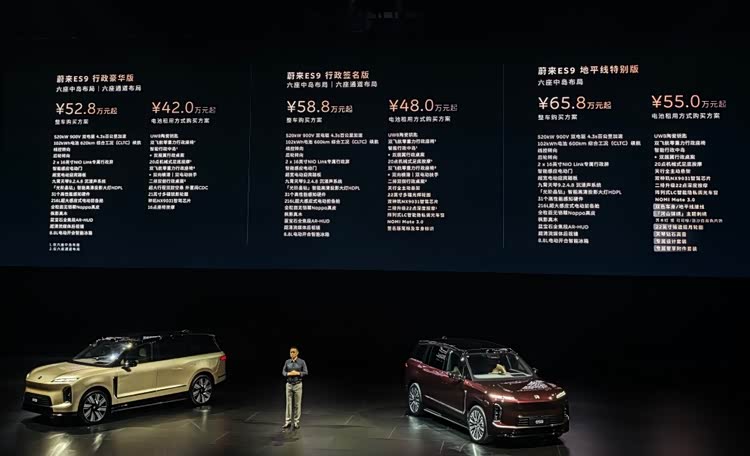 蔚来昨晚为 ES9 旗舰 SUV 举行了一场产品技术发布会。新车拥有超 40 项行业首创技术,号称蔚来十一年体系创新的集大成之作,是行政旗舰 SUV 的全新标杆,预售价 42 万元起(电池租用方式购买)。