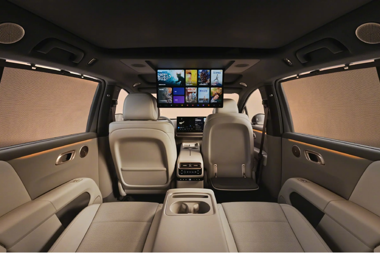 智能配置方面,全系标配AD Max高级辅助驾驶系统,搭载ATL全天候激光雷达和NVIDIA Thor-U芯片,支持VLA司机大模型。座舱用的是高通骁龙8295芯片,前排双15.7英寸大屏,后排可选装21.4英寸吸顶屏,20个扬声器支持无麦K歌。冰箱是冷暖两用的,夏天制冷冬天保温,带娃出门用得上。