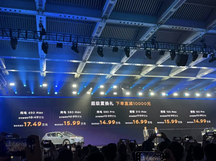 纯电版提供215kW和250kW两种动力,配73kWh或81kWh电池,CLTC续航分别为580km和650km。