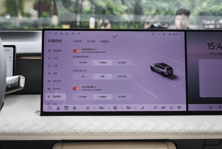 此外,顶配车型搭载激光雷达,辅助驾驶系统来自Momenta,有29个高感知传感器,22项主动安全功能,支持城市NOA、高速NOA和全场景泊车辅助。