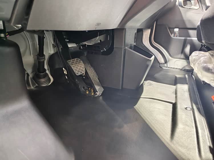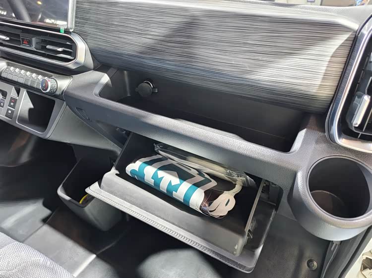 副驾驶员座椅前方设有取电插口、储物格和储物箱