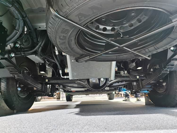 后桥采用钢板弹簧非独立悬挂,全车使用195/70R15LT型轮胎。动力电机额定功率40kW约54.38马力,峰值功率80kW约108.77马力。