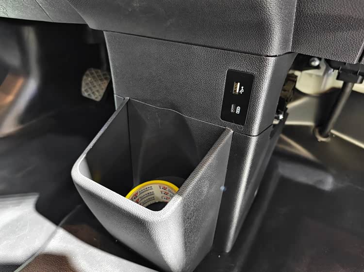 仪表台下方设有充电口和更深的储物槽