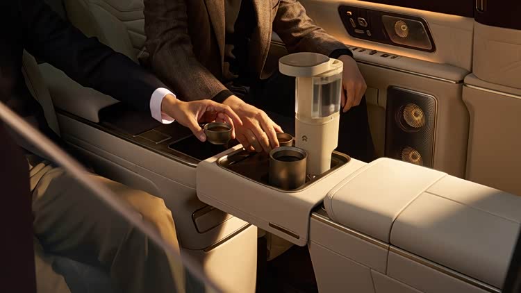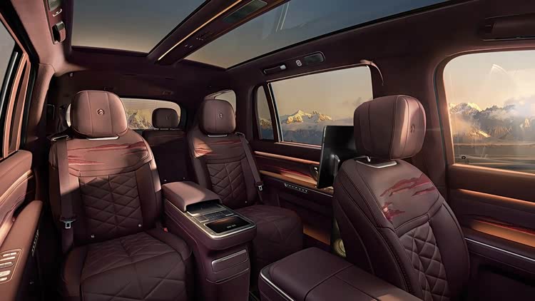 配置上亮点十足,新车分为行政中岛以及行政通道版两种,方向盘造型和ET9一样并带有线控转向,15.6英寸AMOLED中控屏以及48英寸Skyline天际线屏幕,内置SkyOS·天枢整车全域操作系统。47个扬声器的9.2.4.8九霄天琴沉浸声系统,额定功率3020W,影音效果那叫一个棒。内饰有非遗苏绣工艺,尤其是地平线特别版,刺绣工艺特别精致,据介绍这是四大名绣之首的苏绣工艺。二排座椅能零重力,还有42点按摩,连足底按摩都有,还是带热石功能的。冰箱、彩电、沙发可以说一个都不少,另外行政中岛版本拥有带磁吸功能的茶具,老板们的福音。