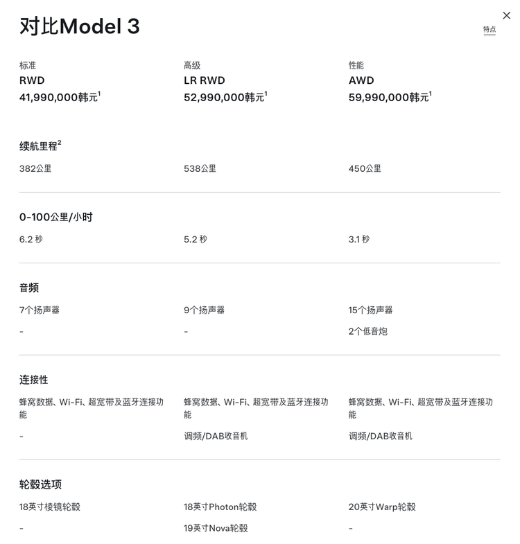 很多品牌做入门版,就是在各种配置上「砍一刀」,比如暂时没有引入中国市场的Model 3入门版,为了压缩生产成本、拉低入门售价,海外版在舒适性配置上做了全面精简,氛围灯、玻璃天幕、后排控制屏悉数取消。内饰用料与功能性配置同样大幅缩水,续航里程从583km降至382km,零百公里加速时间相比原版车型慢了整整一秒,整体产品力出现明显退步。