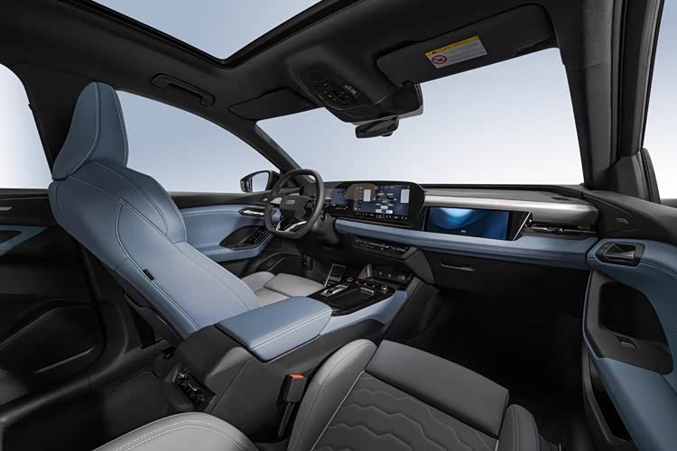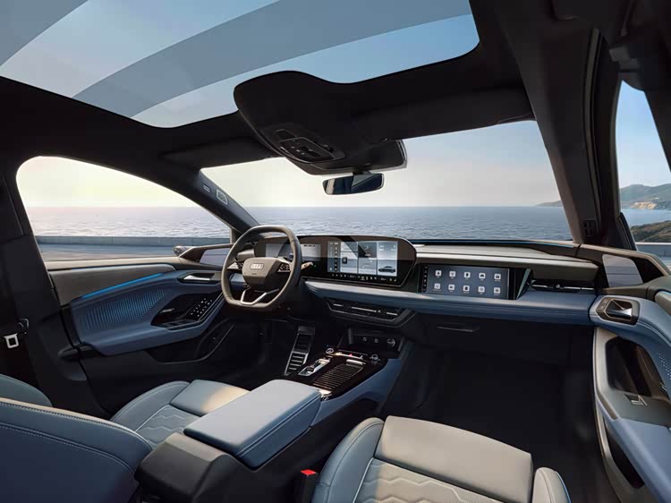 车内部分,A6L e-tron构建了“六屏联动”的数字舞台,包括11.9英寸虚拟座舱、14.5英寸MMI中控屏、10.9英寸副驾娱乐屏、AR-HUD抬头显示以及两块电子外后视镜显示屏。其中,AR-HUD的等效尺寸达到了88英寸,能实现导航箭头与真实路况的虚实叠加。在交互层面,新车与思必驰联合开发了智能语音助手,支持60秒内连续识别10条指令,准确率超95%,并引入了创新的“眼神控车窗”功能——驾驶者只需一个眼神配合语音指令,即可控制车窗开闭。系统目前已支持四川话与粤语识别,Avatar语音形象也让交流更具温度。此外,1.88平方米的九分区可调光全景天幕支持毫秒级响应,紫外线隔绝率高达99.9%。