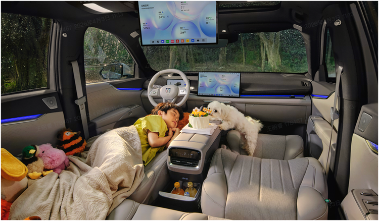 别克至境E7也是孩子的“豪华起居室”。同级唯一四座悬浮层座椅,为全家带来母婴级柔软呵护。四座支持双人大床、副驾单人床等多模式随心切换,随时成为孩子的休憩空间。副驾搭载伊姆斯零重力躺椅,可实现腹部、腿部角度双120°躺姿,落座即享零压感。