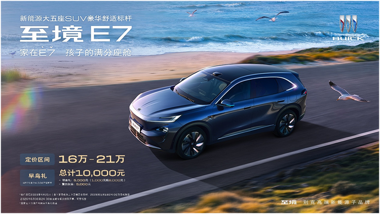4月10日,别克高端新能源子品牌“至境”旗下首款SUV——别克至境E7于三亚公布三款车型配置,均配备真龙插混Pro系统,带来满电亏电一条龙的高效性能表现。新车定价区间为16万—21万元,全系标配 42项高价值豪华舒适配置,以“入门即满配、顶配即满分”的配置诚意,为用户提供一步到位的真满配体验。目前,别克至境E7已全面抵达全国经销商展厅,将于4月22日公布售价并开启交付。