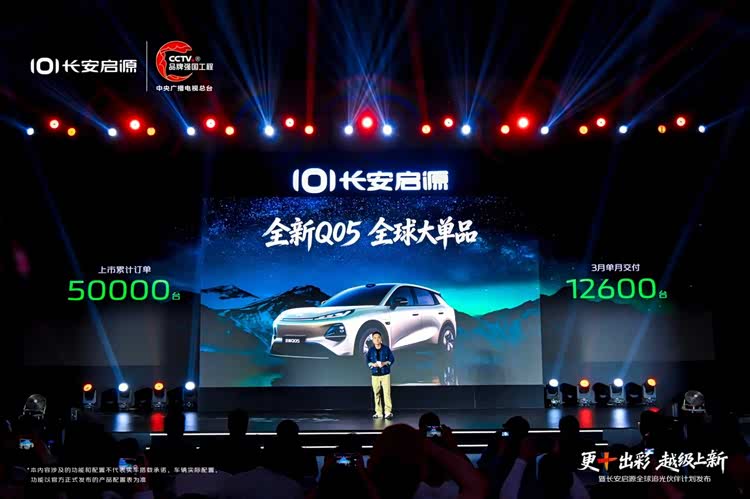 长安启源自2023年8月品牌发布以来,以跨越式发展刷新行业纪录,不到三年即将突破50万辆,跻身全球新能源品牌销量前十,助力中国长安新能源汽车年销量突破100万辆。2026年3月长安启源销量36875辆,稳居央企新能源冠军,其中长安启源A06上市4个月累计交付3万辆,3月上险量位居中大型新能源轿车TOP3。全新Q053月单月实现交付12600台,上险12977台,一举拿下紧凑型纯电SUV细分市场销量第一名,“启源速度”令行业瞩目。