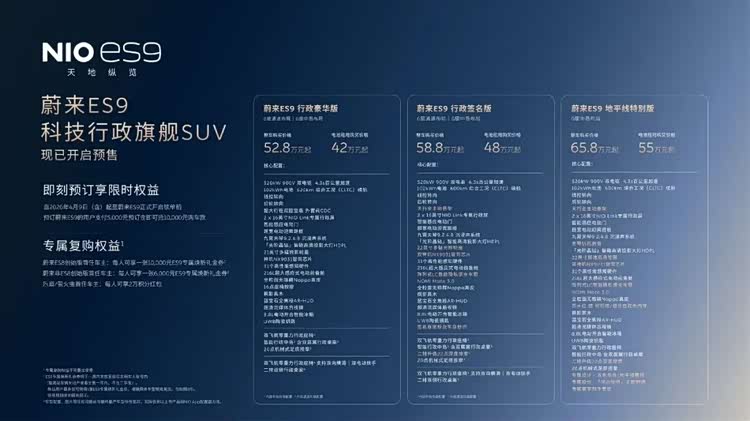 4月9日, 蔚来ES9(参数|询价)开启预售,整车预售价52.8万起,BaaS租电预售价42万起。这个价格一出来,争议没先爆,反而是“居然不贵”的声音先起来了。因为大家发现,ES9并不是一台普通意义上的大SUV,而是把蔚来最贵那套技术,第一次塞进了更像主流消费品的车里。