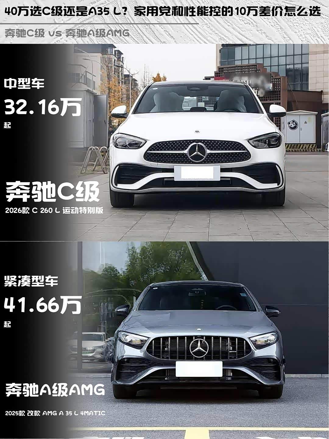 最近后台好多人在问:预算40万左右,奔驰C级 2026款 C 260 L 运动特别版和AMG A 35 L 2025款改款到底该选谁?今天就来个深度对比!💪