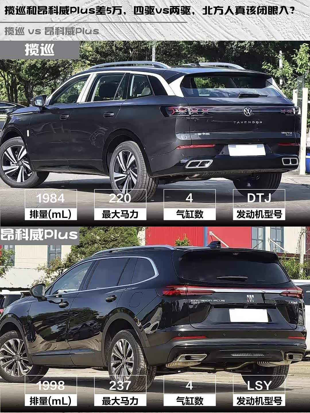 两车都是2.0T但性格迥异!揽巡220马力+四驱系统,雨雪天稳如老狗,实测雪地模式脱困能力堪比硬派越野。昂科威Plus 237马力更暴躁,8秒破百的加速推背感更强。油耗方面,昂科威Plus WLTC 7.99L/100km确实更省,但揽巡的8.68L对于2吨重的四驱车来说也算优秀了。