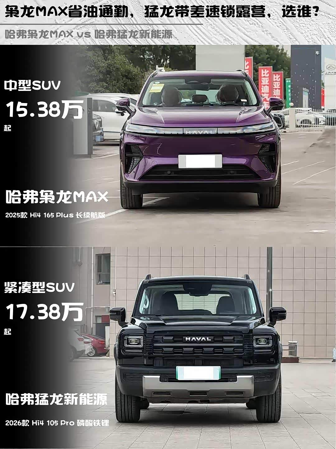 车家号·0浏览·2026-04-11 08:47 · 北京最近在纠结 哈弗枭龙MAX(参数|询价) 2025款 Hi4 165 Plus 长续航版和哈弗猛龙新能源 2026款 Hi4 105 Pro 磷酸铁锂?作为两款同门兄弟,定位却完全不同,今天就来聊聊它们的区别!🚗💨