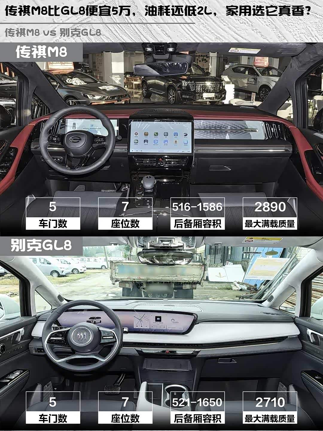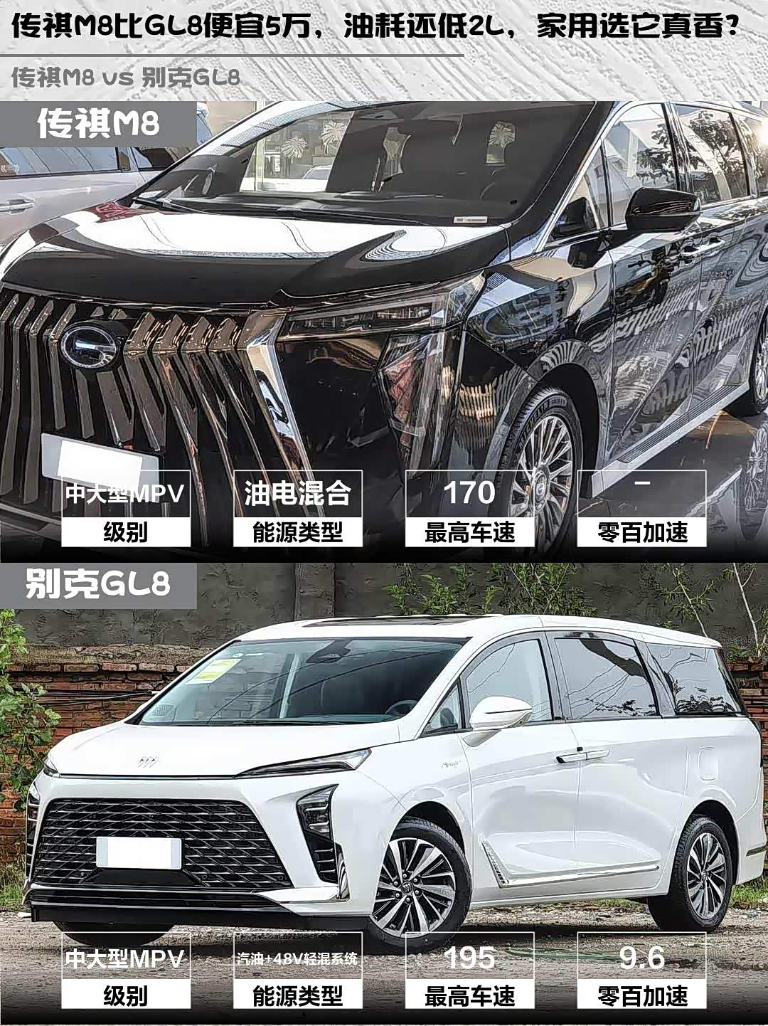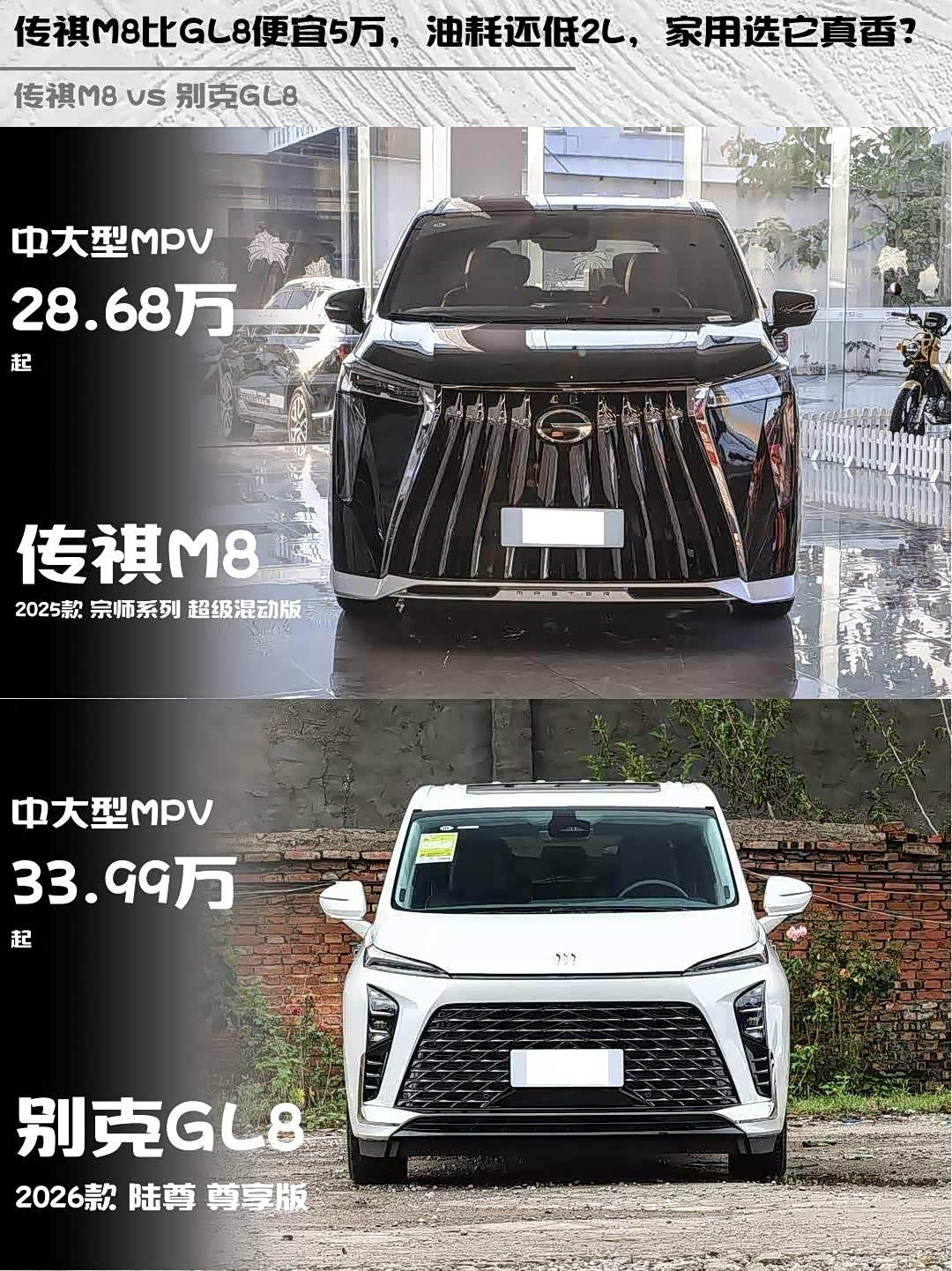 先说说价格💰:传祺M8混动28.68万 vs GL8轻混33.99万,差价5万多!传祺这波性价比直接拉满,省下的钱够加两年油了~
