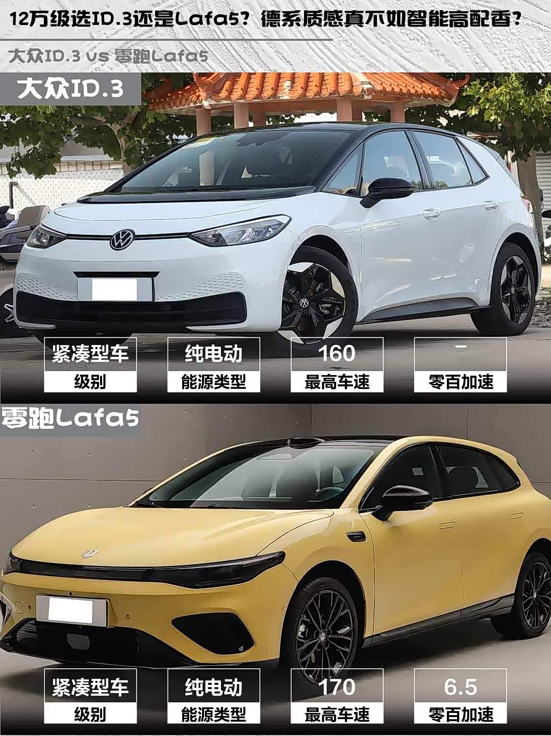 要德系驾控质感选ID.3,12.9888万的价格底盘调校同级难逢对手;追求配置和续航就选Lafa5,12.18万给你无框车门+激光雷达,性价比确实高。两台车都适合都市通勤,看你更看重驾驶乐趣还是智能体验啦~