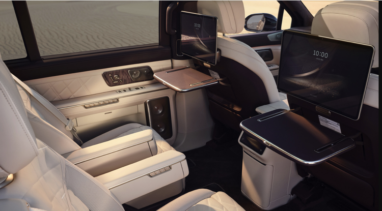 **在舒适维度**,行业首创的20点机械足底按摩、阵列式LC智能隐私调光车窗(17ms超快响应)、飞航零重力座椅,将"移动会客厅"从概念变为现实。