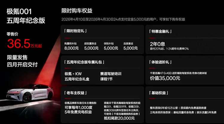 极氪001五周年纪念版 官方售价 |