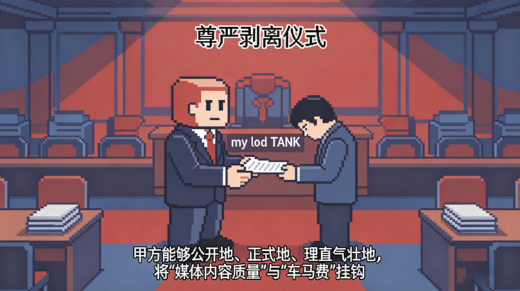 这个判罚,是my lord TANK在为媒体举行一场“尊严剥离仪式”,他们的目的就是要创立<甲方能够公开地、正式地、理直气壮地,将“媒体内容质量”与“车马费”挂钩>的的先河。