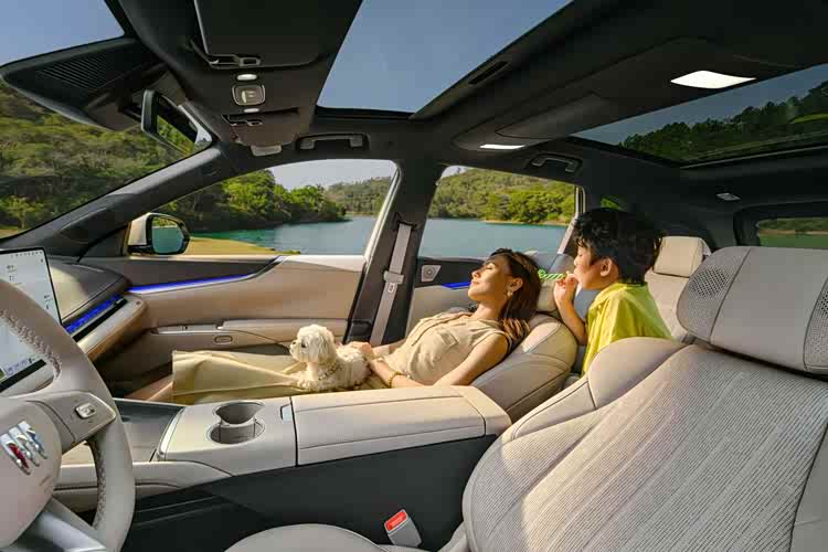 例如副驾座椅,就支持零重力功能。在两人出行的时候,副驾乘客就可以开启零重力座椅,让长途出行更加舒适。