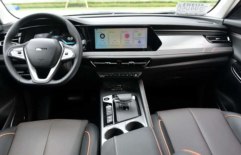 走进内饰,内饰的打造一向都是国产车的强项,这款新车当然也不例外,不管是布局还是用料,绝对能够让很多消费者称心如意,整体中控台的造型非常的大气,较多贯穿式的设计之下,展现出了强烈的层次感,当然用料方面更是厚道,细腻有质感显得档次感十足,值得一提的是,该车依旧采用了时下流行的,双联屏设计,配合大气的方向盘和档把,将车内科技感发挥到了极致。
