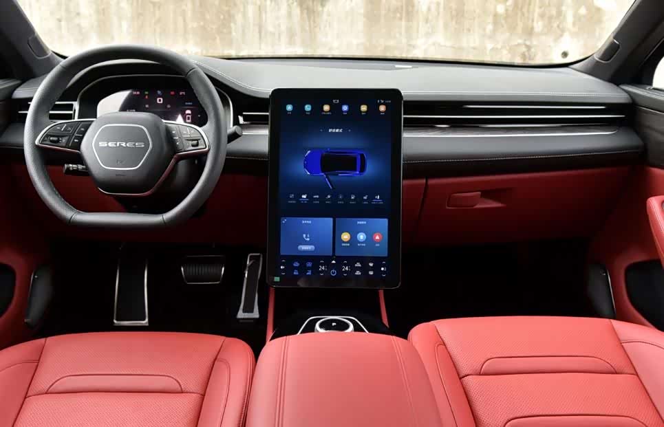 走进内饰,作为一款国产高性能轿跑SUV,赛力斯SF5在内饰的打造上,也是具有很高的造诣,整体展现出了非常强烈的档次感,感觉相比于豪车也是毫不逊色,层次感十足的中控台,周围都采用了大量的皮质材料,同时座椅也采用了真皮包裹,整体质感非常强烈,当然12.3英寸的全液晶仪表盘,配合17英寸的液晶大屏,不仅带来了强大的科技感,同时还搭载了华为车机系统,功能非常的强大。