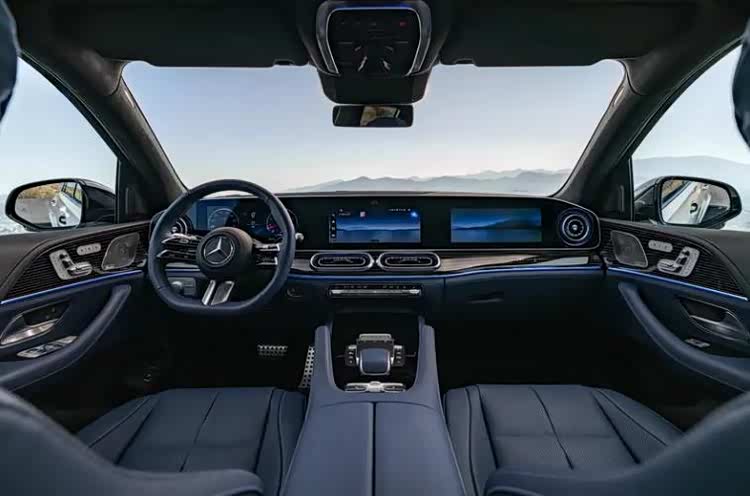 内饰方面的改动也是此次改款的焦点,新车摒弃了此前双联屏的设计,转而采用了全新的MBUX Superscreen超联屏布局。这套系统由三块12.3英寸的屏幕横向贯穿整个仪表台,并集成在一块完整的玻璃面板之下,包括全液晶仪表、中央触控屏以及副驾驶娱乐屏。方向盘换装了带有物理滚轮和拨杆的全新样式,并保留了必要的实体操作键以便于盲操作。车机系统搭载了奔驰自研的MB.OS架构,其运算能力相较前代有较大提升,系统内还集成了生成式AI语音助手,并支持AR实景导航和整车OTA功能。