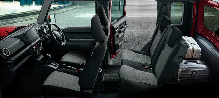 作为四门版车型,空间升级是吉姆尼Nomade的核心亮点。相比三门版,它的轴距延长了340mm,重点优化了后排空间:后席髋部位置后移50mm,确保充足的腿部空间;后排左右乘员的乘坐间距扩大90mm,避免拥挤感;加厚的座椅坐垫,让后排乘客即使长时间乘坐也不易疲劳,彻底解决了三门版后排“只能应急”的尴尬。
