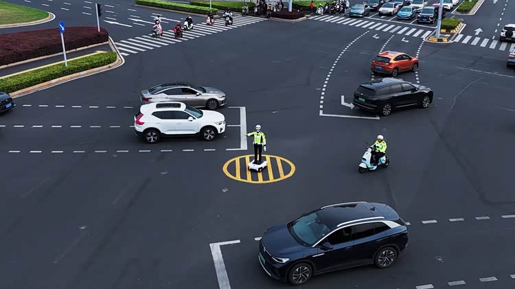 交警机器人与交警协作执勤的情况