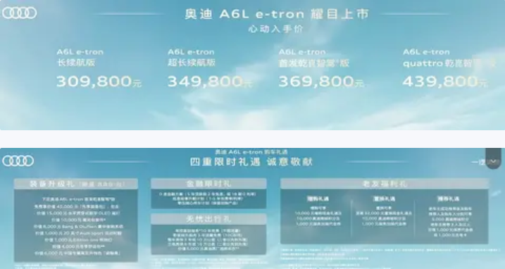 售价30.98万元起,一汽奥迪A6L e-tron上市,最高续航815公里