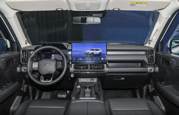 外观部分我们简单带过,方盒子造型依然是流量密码,全新样式的前格栅更有力量感,车身侧面最显著的变化是C/D柱之间增加的封闭式面板装饰,车尾保留了外挂式全尺寸备胎,车顶多出来的激光雷达也很显眼。可能有些人觉得这么硬派的造型,装上激光雷达有一点割裂。但其实很容易理解,猛龙PLUS的目标用户根本不是那些越野老炮,而是喜欢硬派造型,但实际大多数时间都在城里通勤、周末去郊游的普通用户。对于他们来说,一套好用的高阶智驾在长途高速上的价值,可能大于一把后桥差速锁。长城的思路很清晰,它知道买这车的人要的是什么,就是既要看上去很硬派,又要在日常通勤里省心省力。