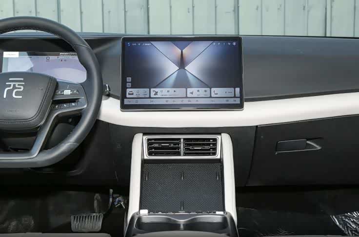 目光聚焦在比亚迪元UP的身上,这款车搭载的是比亚迪八合一电驱系统(前置电机最大功率95马力),适配自研刀片电池,电池容量对应45.12kWh,官方百公里电耗数据显示为12.2kWh,属于一个同级主流的水平,而这套电驱系统的优势在于高度集成化、体积小、重量轻,便于提升座舱内的空间利用率,同时理论上能带来更高的能量转化效率。