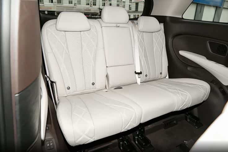 很多采用7座布局的中大型SUV一般第三排实测只能满足应急出行需求,而MPV则不一样,这些车型的第三排往往是检验诚意的试金石。在这方面,腾势D9 DM的表现中规中矩,得益于较大的车身尺寸,D9 DM的第三排头部和腿部空间在标准状态下表现不错,成年人短途乘坐没问题。但是,一旦第二排乘客需要较大的腿部空间向后移动,第三排空间就会被明显压缩,出现“顶腿”的现象。而且D9 DM第三排的坐垫高度相对较低,大腿支撑性一般,长途乘坐易感到疲劳。
