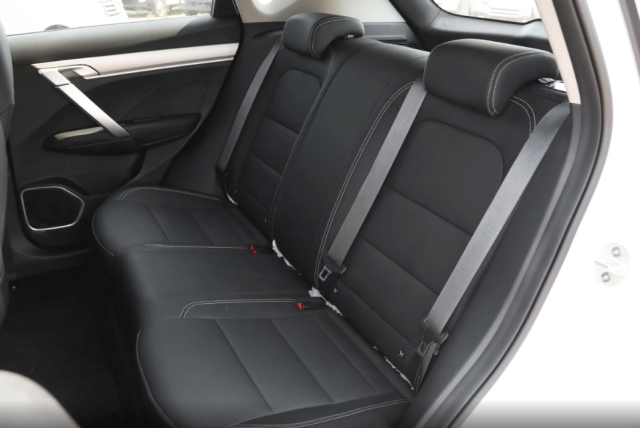 2600mm轴距带来的空间表现中规中矩,身高175cm的乘客坐进后排,膝部约有一拳余量,头部空间一拳,日常两人或三口之家使用足够。但后排横向空间局促,坐三位成年人会显得拥挤,后备厢常规容积偏小,仅能容纳两个22寸行李箱,放倒后排座椅后坡度较大,拓展实用性打了折扣。