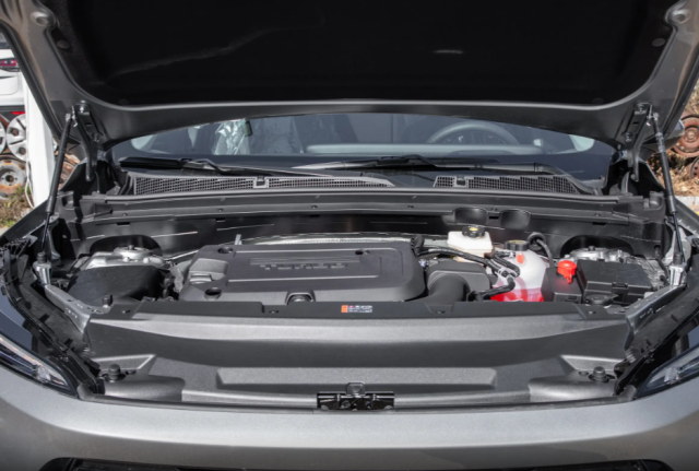 底盘调校是惊喜所在,前麦弗逊+后多连杆悬架搭配云台式底盘系统,滤震表现远超预期。通过减速带时,悬架动作干脆利落,没有多余弹跳,车身一次起伏后便能稳定下来;高速行驶时底盘沉稳,遇到横风也不会发飘,变线时侧向支撑充足,完全不像一台尺寸较大的SUV。不过低速跟车时,9AT变速箱仍有轻微顿挫,尤其是1-2档切换时,这一现象在拥堵路段会更明显。