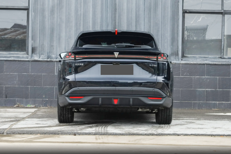 车身侧面,深蓝S07采用硬朗精细的线条,勾勒出前低后高的车身姿态,显得运动感十足。无框车门的设计搭配隐藏式门把手,不仅能降低行驶过程中的风阻系数,还提升了车身科技感。为了丰富车身侧面的层次感,深蓝S07对车门下方进行了内凹的处理,设计了明显的折线,搭配19的花瓣式轮胎,使整车看起来更运动。车尾部分,深蓝S07采用了上窄下宽的设计,视觉重心上移,原本硕大的车身看起来更加轻盈,内凹式贯穿式尾灯进行了熏黑处理,搭配底部的大尺寸扩散器,提升了整车的运动氛围。